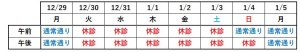 年末年始の診療に関しては下記の通りです。よろしくお願い致します。